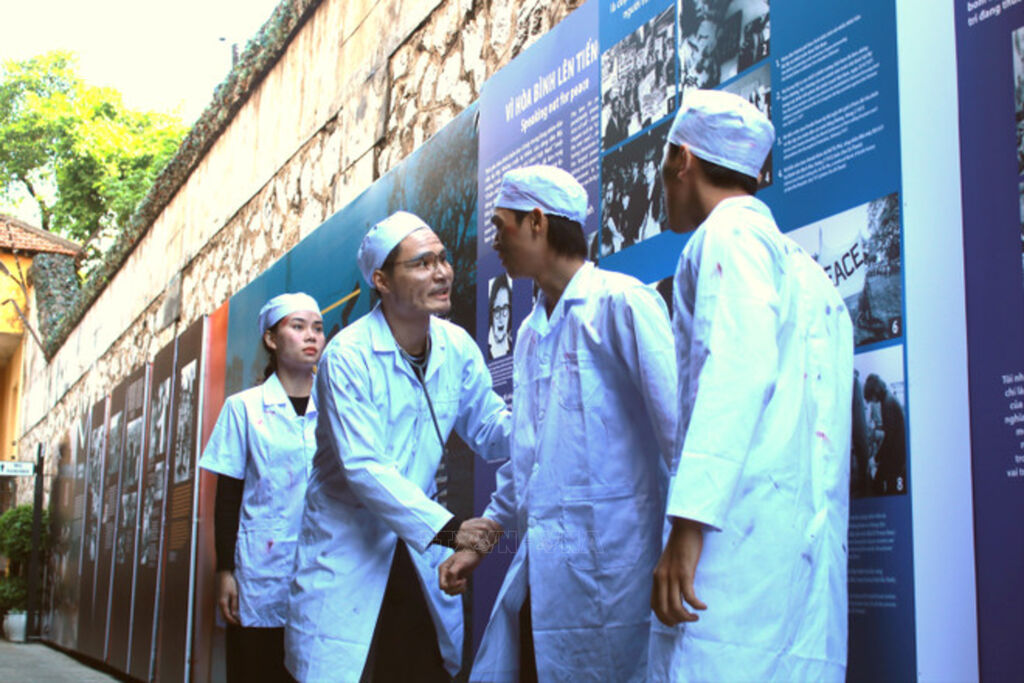 Tại khai mạc trưng bày, du khách được xem hoạt cảnh tái hiện câu chuyện chị Trần Thị Thoa - một nhân viên của bệnh viện bị bêtông đè chết ngay cửa ra của hầm khoa Da liễu.