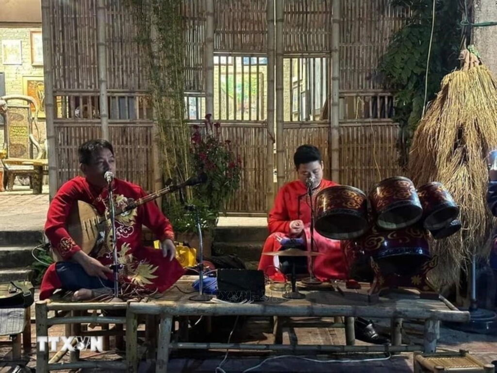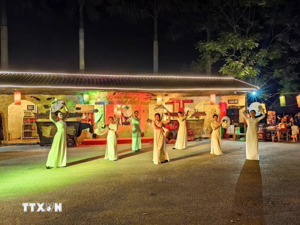 | Biểu diễn văn nghệ trong chương trình "Đêm làng cổ" Đường Lâm. (Ảnh: Minh Quân/TTXVN phát) |