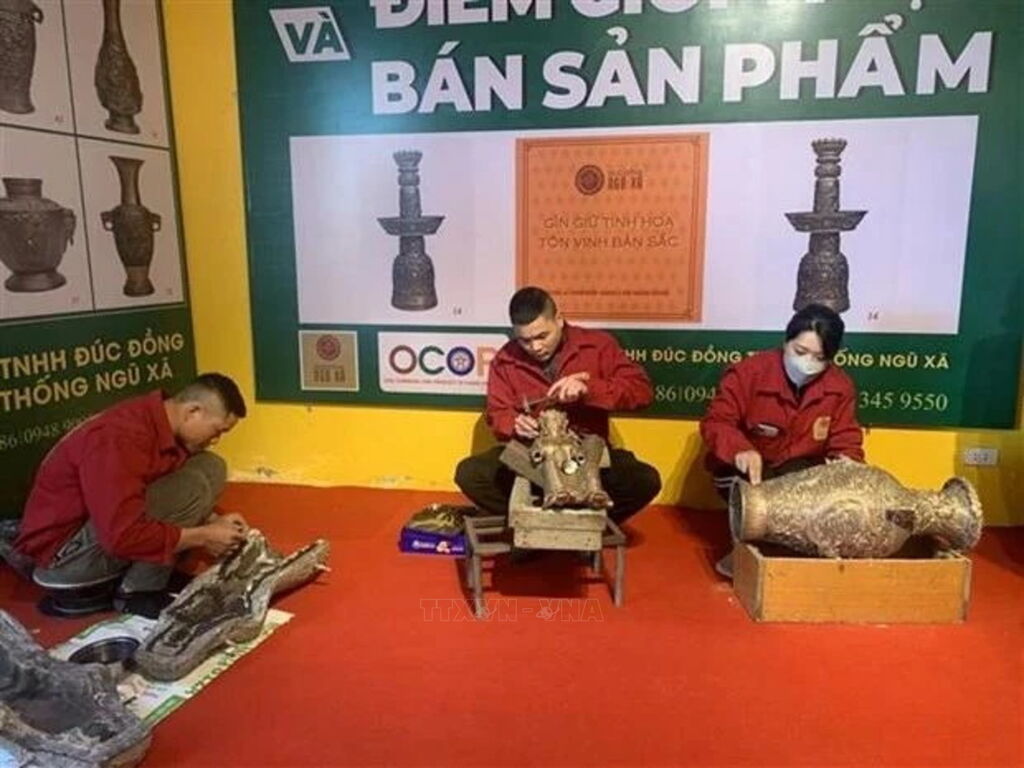 | Sản phẩm của làng nghề đúc đồng Ngũ Xã. (Ảnh: Phương Anh/TTXVN). |