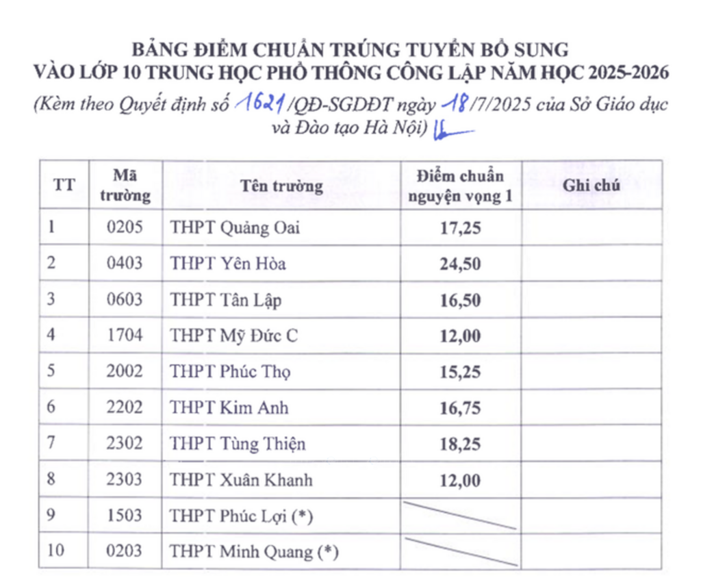 Chiều nay, 17/7, Sở Giáo dục và Đào tạo Hà Nội đã công bố điểm chuẩn xét tuyển bổ sung vào lớp 10 trung học phổ thông công lập trên địa bàn thành phố.