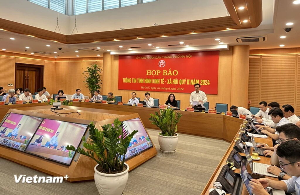 Nhiều ngành và lĩnh vực của thành phố Hà Nội trong nửa đầu năm 2024 đã có tăng trưởng cao hơn so với cùng kỳ năm trước, đặc biệt hoạt động sản xuất-kinh doanh duy trì ổn định, công nghiệp tăng khá. Đây là những nét nổi bật được đưa ra tại buổi họp báo thường kỳ do Ủy ban Nhân dân thành phố Hà Nội tổ chức chiều 26/6, tại Hà Nội.