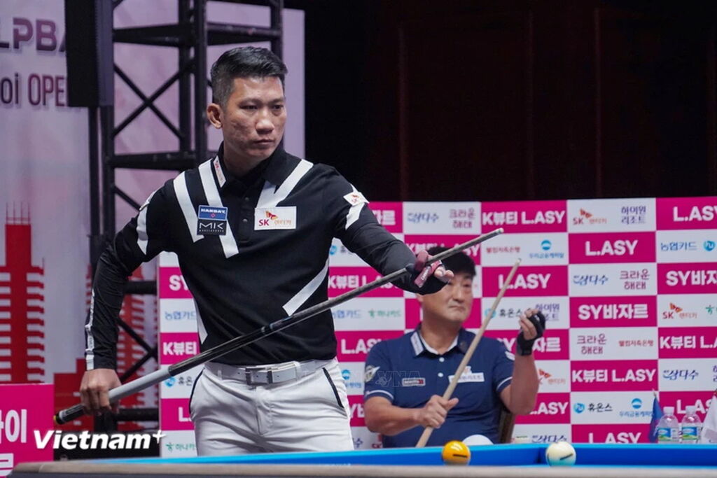 | Cơ thủ Ngô Đình Nại (áo đen) hiện đang xếp thứ 21 trên Bảng xếp hạng PBA Tour, tham gia tranh tài tại Giải PBA LPBA SY Bazzar Hà Nội Open 2024. (Ảnh: Việt Anh/Vietnam+) |