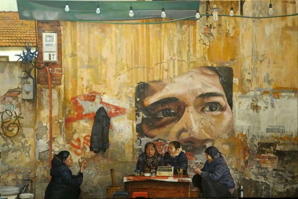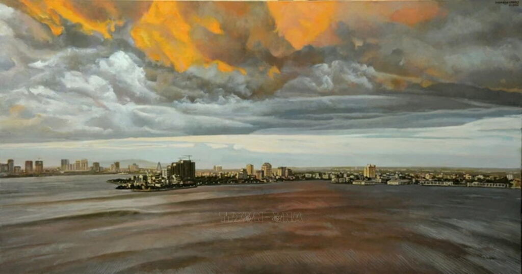 | Tác phẩm "Chiều Hòe Nhai" (sơn dầu trên toan, 100x 140cm). (Ảnh: Minh Thu/Vietnam+) |