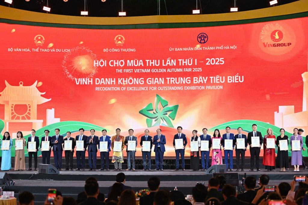 | Vinh danh 30 tổ chức, doanh nghiệp có “Không gian trưng bày tiêu biểu” tại Hội chợ Mùa Thu lần thứ nhất năm 2025. (Ảnh: PV/Vietnam+) |