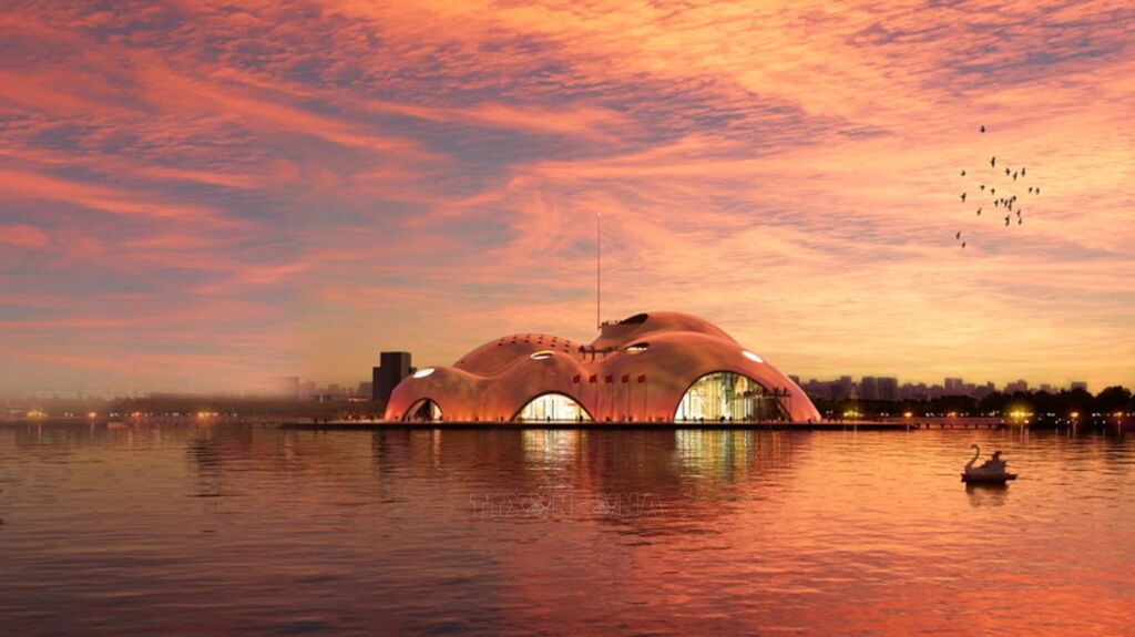 | Mái vòm nhà hát lấy cảm hứng từ những con sóng Hồ Tây. |