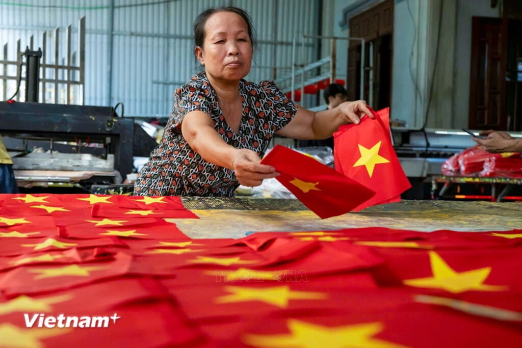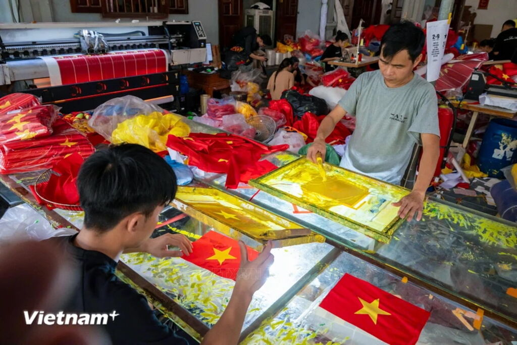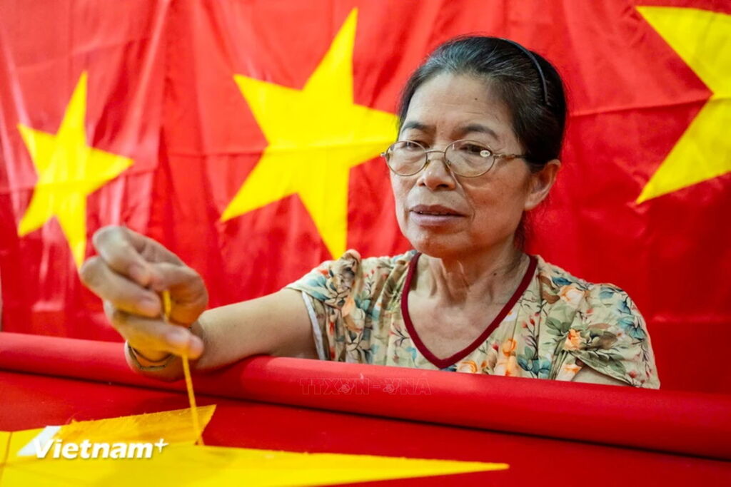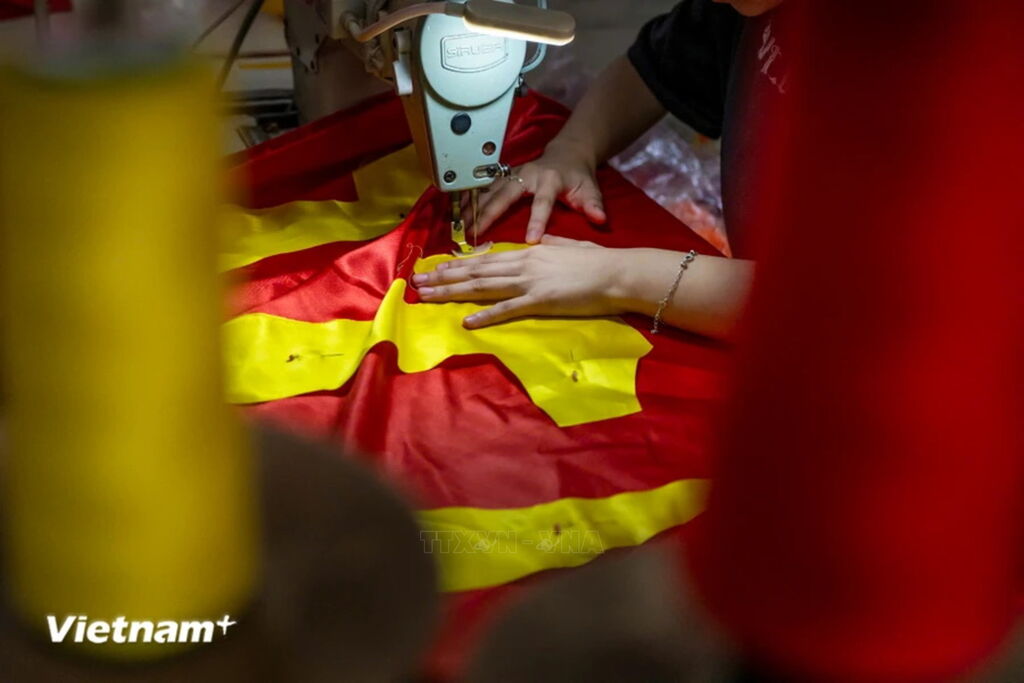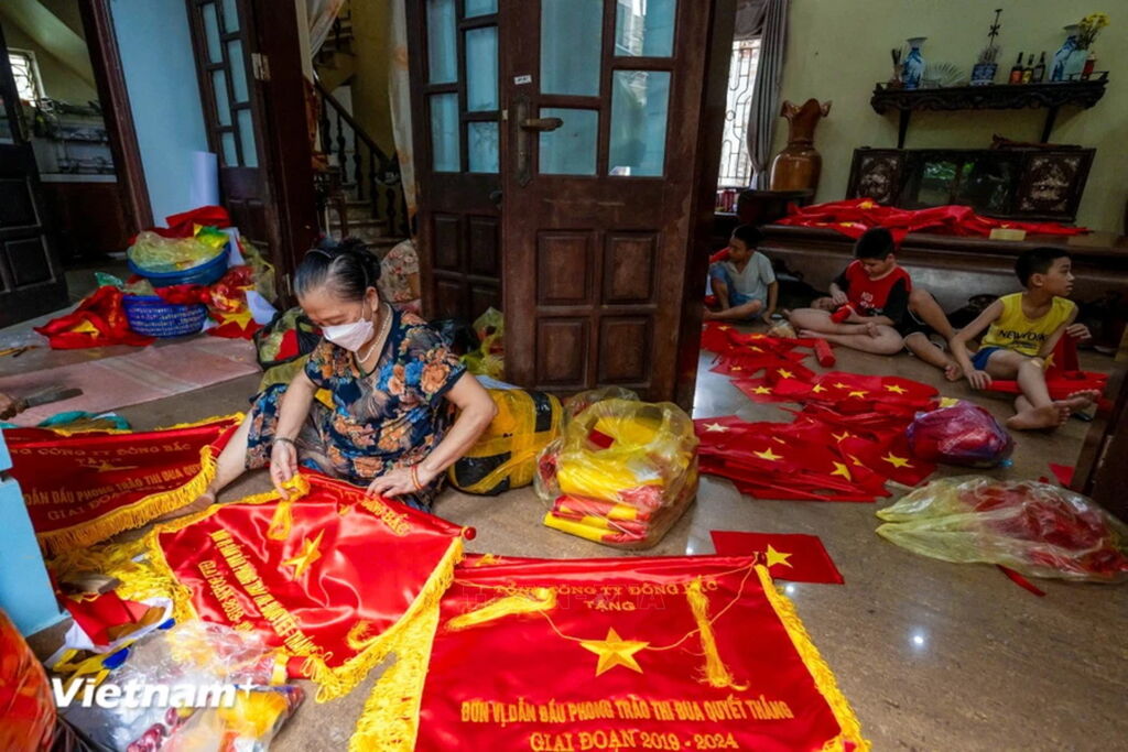Làng nghề may, thêu cờ lớn nhất Hà Nội tất bật trước ngày Quốc khánh
