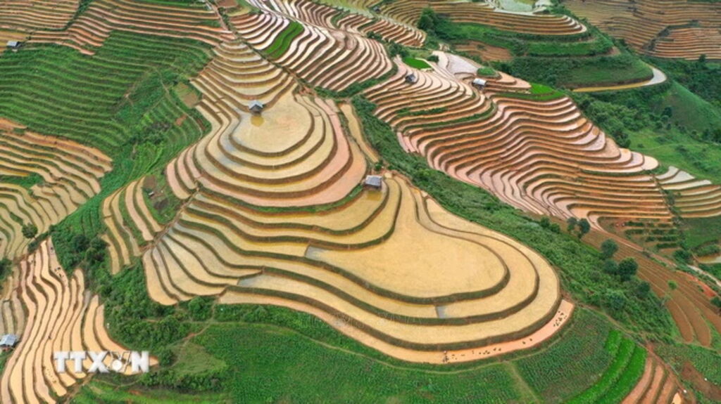 Vào mùa Thu (tháng 9, tháng 10) hằng năm, đến hẹn lại lên, hàng đoàn du khách lại rủ nhau về đây để chiêm ngưỡng những thửa ruộng bậc thang như những “nấc thang vàng” lấp lánh. Đâu đâu cũng thấy những thửa ruộng đang vào mùa lúa chín được xếp thành từng tầng, từng lớp trải rộng khắp các quả đồi, lớp nọ lại nối với lớp kia như đang vươn cao lên trời.