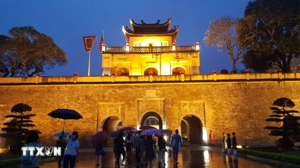 | Đoan Môn - Hoàng thành Thăng Long về đêm. (Ảnh: Đinh Thuận/TTXVN) |