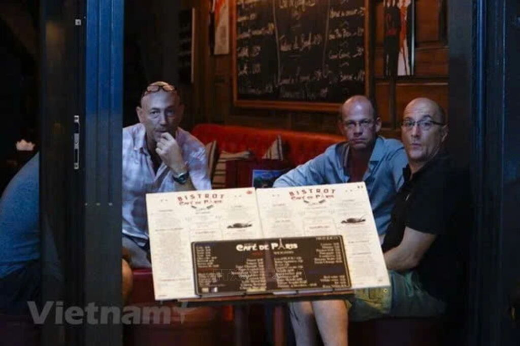 | u khách nước ngoài tại quán bia trên phố cổ Hà Nội. (Ảnh: Minh Hiếu/Vietnam+) |