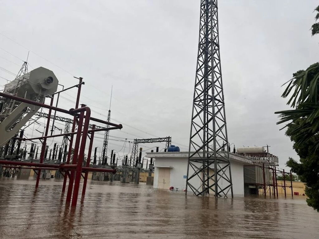 | Trạm biến áp 110kV Thường Tín ngập sâu do nước dâng cao. (Ảnh: evnhanoi) |