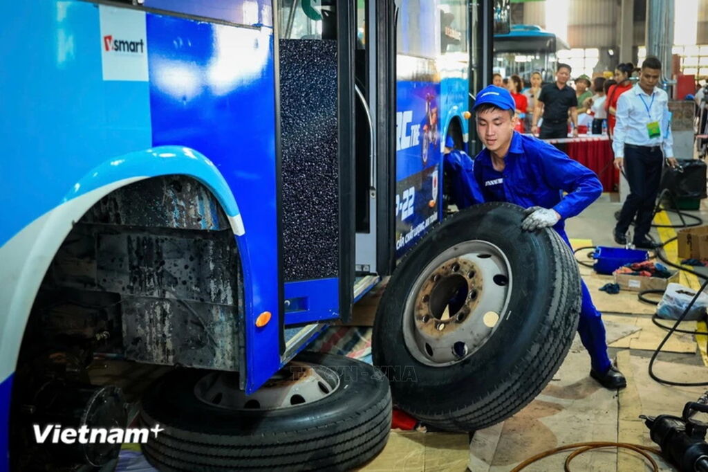 | Thợ bảo dưỡng sửa chữa xe buýt tranh tài tại hội thi là những người có tay nghề cao. (Ảnh: Hoài Nam/Vietnam+) |