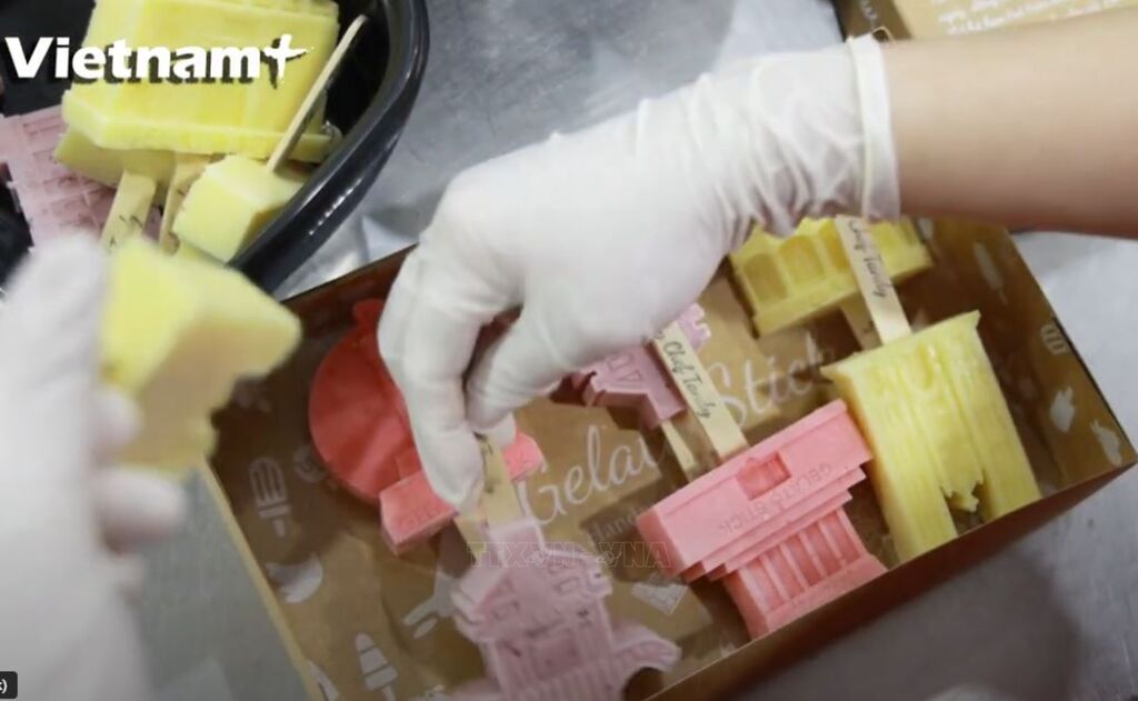 Văn Miếu, Tháp Rùa, Bốt Hàng Đâu hay Hoàng Thành Thăng Long… là những địa danh quen thuộc nổi tiếng của Thủ đô nay được thu nhỏ lại chỉ bằng những chiếc kem độc đáo ngộ nghĩnh, khiến nhiều khách du lịch, người dân thưởng thức kem không khỏi thích thú.
